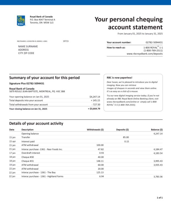 This editable RBC utility statement is intended for lawful, professional use—ideal for documentation testing, UX validation, and proof-of-address visualizations. Always apply it responsibly and in compliance with digital standards and ethical guidelines.