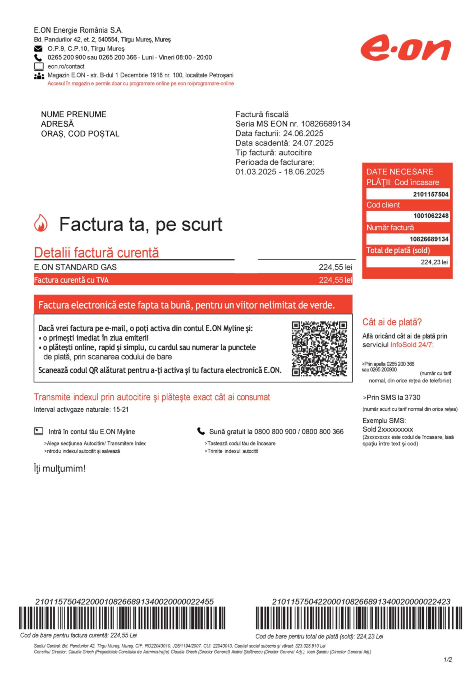 This E-ON Romania template is intended for lawful and ethical use only. It supports legitimate verification, user interface testing, and internal documentation reviews where POA/KYC validation is required in compliance with regulations.