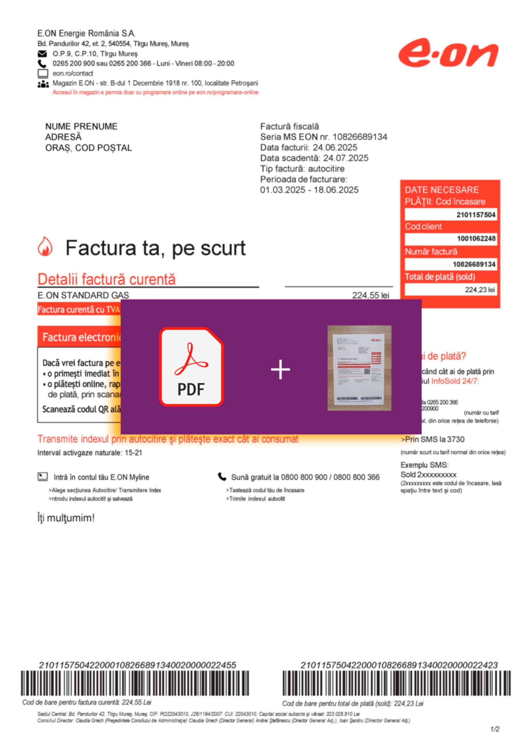 Your download includes both JPEG and PDF + JPEG formats, crafted at 300 DPI for professional digital and print quality. Each file mirrors E-ON’s official Romanian bill structure and contains editable fields for account holder information, meter readings, billing cycle, and total charges. Free revisions until approval, secure checkout, 24-hour turnaround, and 24/7 customer support are included to ensure a smooth and reliable experience from order to completion.