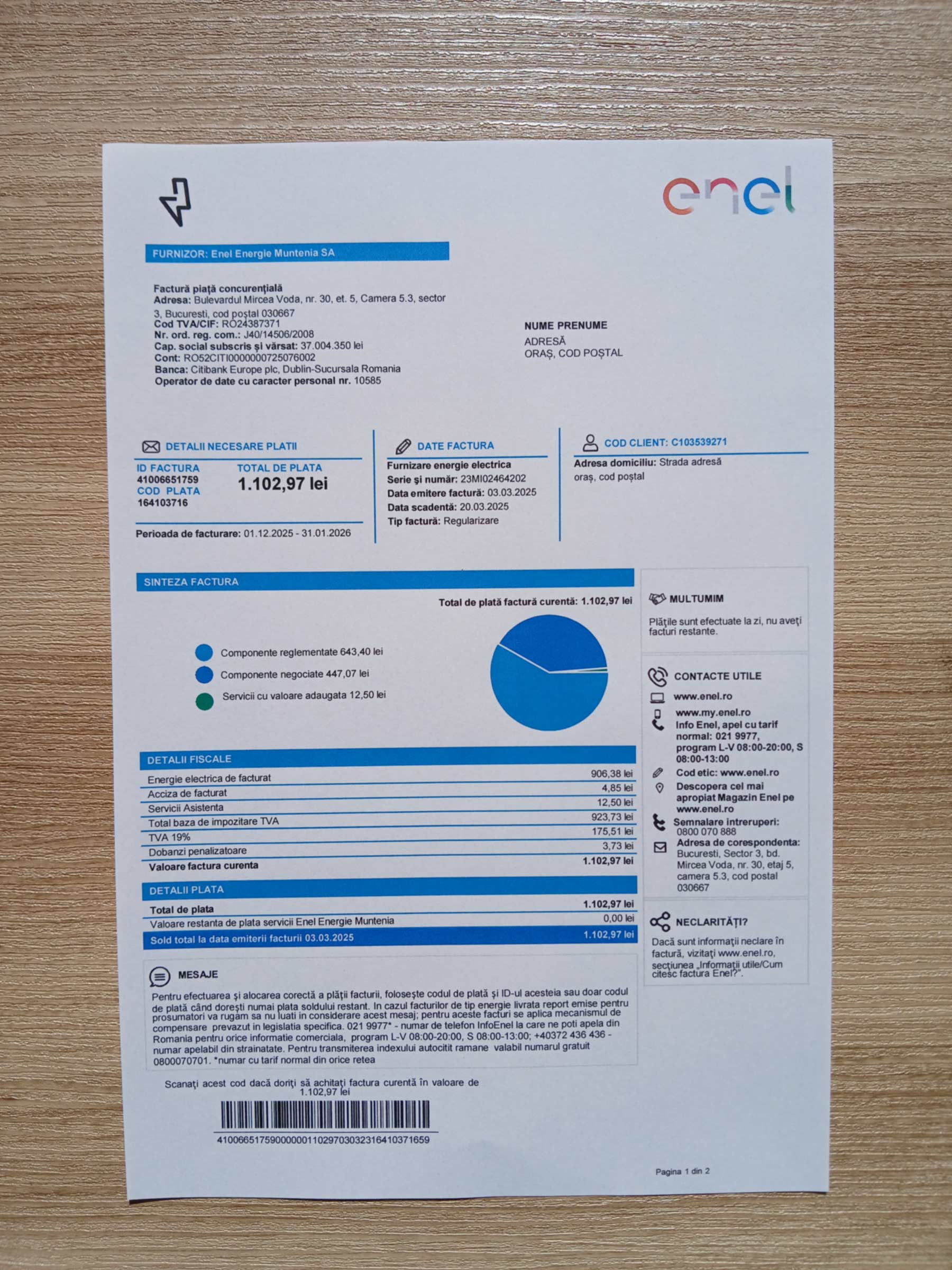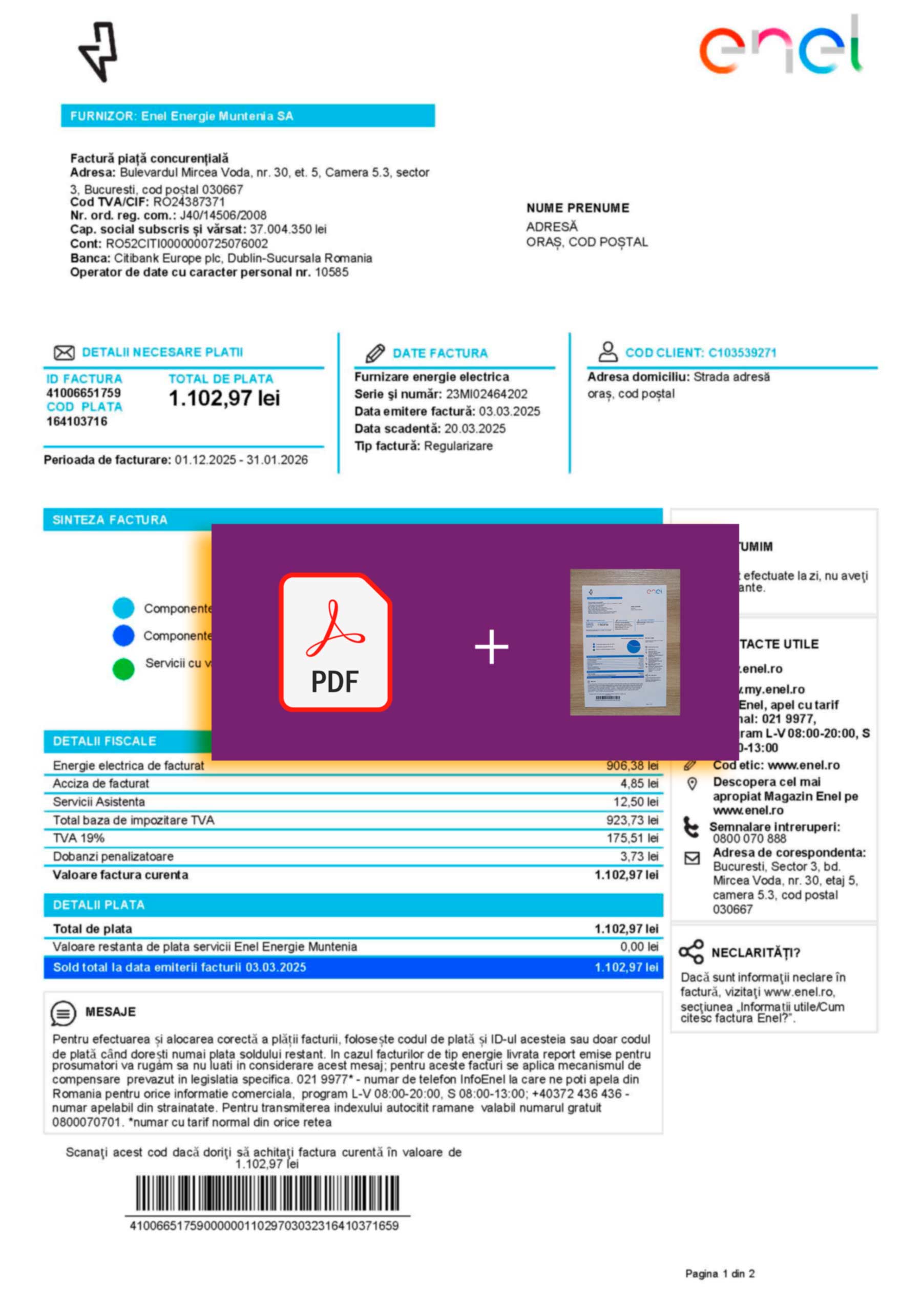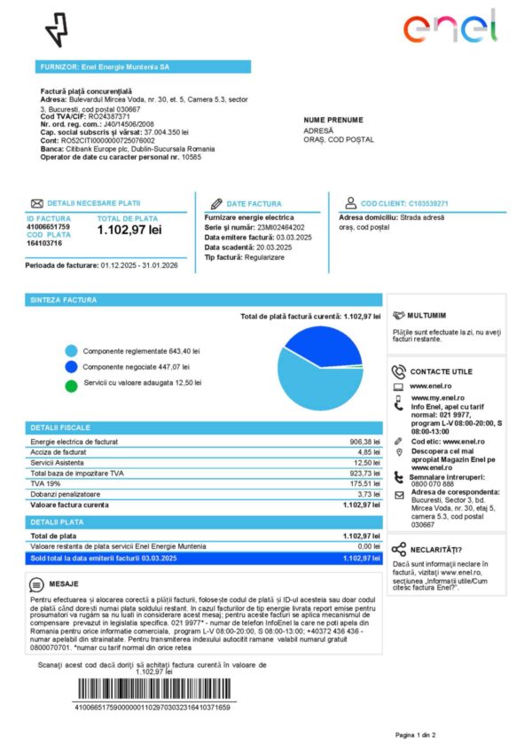 Includes: PDF and JPEG formats at 300 DPI resolution, designed to match authentic Romanian utility bill structures. Editable fields include customer name, address, billing cycle, meter usage, and total amounts. Every purchase includes free revisions until approved, secure online checkout, 24-hour delivery, and continuous customer support for updates or clarifications.
