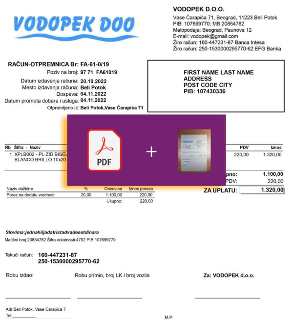 You’ll receive PDF and JPEG files in 300-DPI print-ready quality. The layout is fully aligned with standard Serbian utility bill structures and includes editable fields for customer name, address, service dates, usage, and total amount. Every order comes with free revisions until approved, a secure checkout process, and 24-hour turnaround backed by 24/7 customer support.