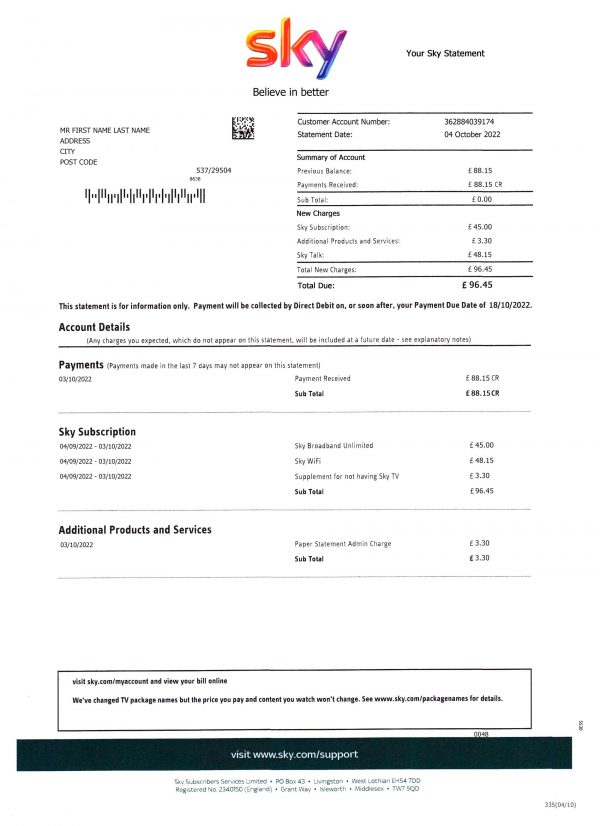 Delivered in both PDF and JPEG formats, this editable 2025 Sky statement is built for print and digital use. Each file includes editable sections such as customer name, address, account number, transaction history, and closing balance. Every order features free revisions until approval, secure checkout, fast turnaround (24 hours), and full 24/7 support from our team.