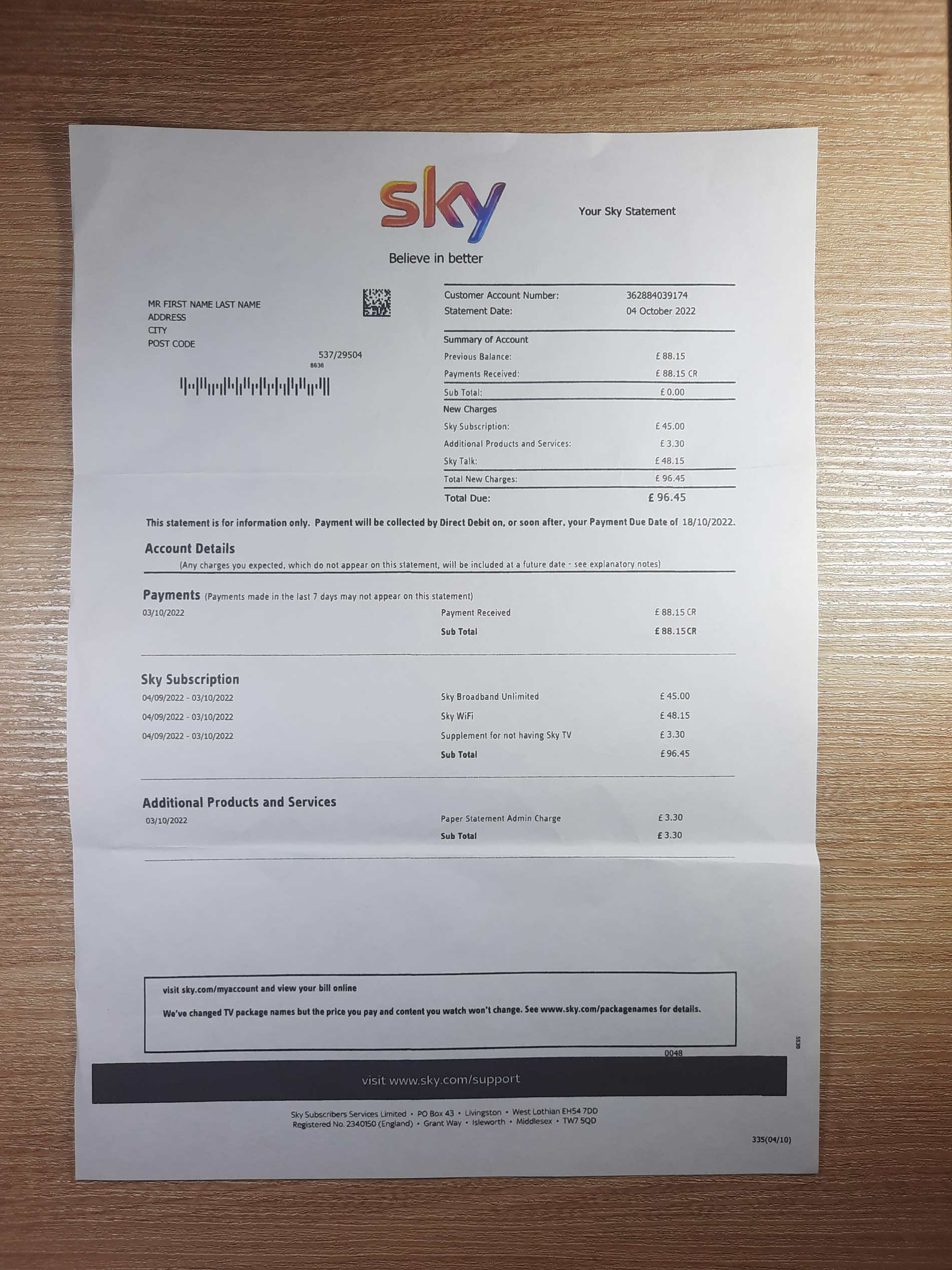 This editable Sky statement is intended for lawful applications such as internal documentation, UI/UX testing, or compliance training. It is not for financial misuse; all use cases must adhere to legal and ethical standards.