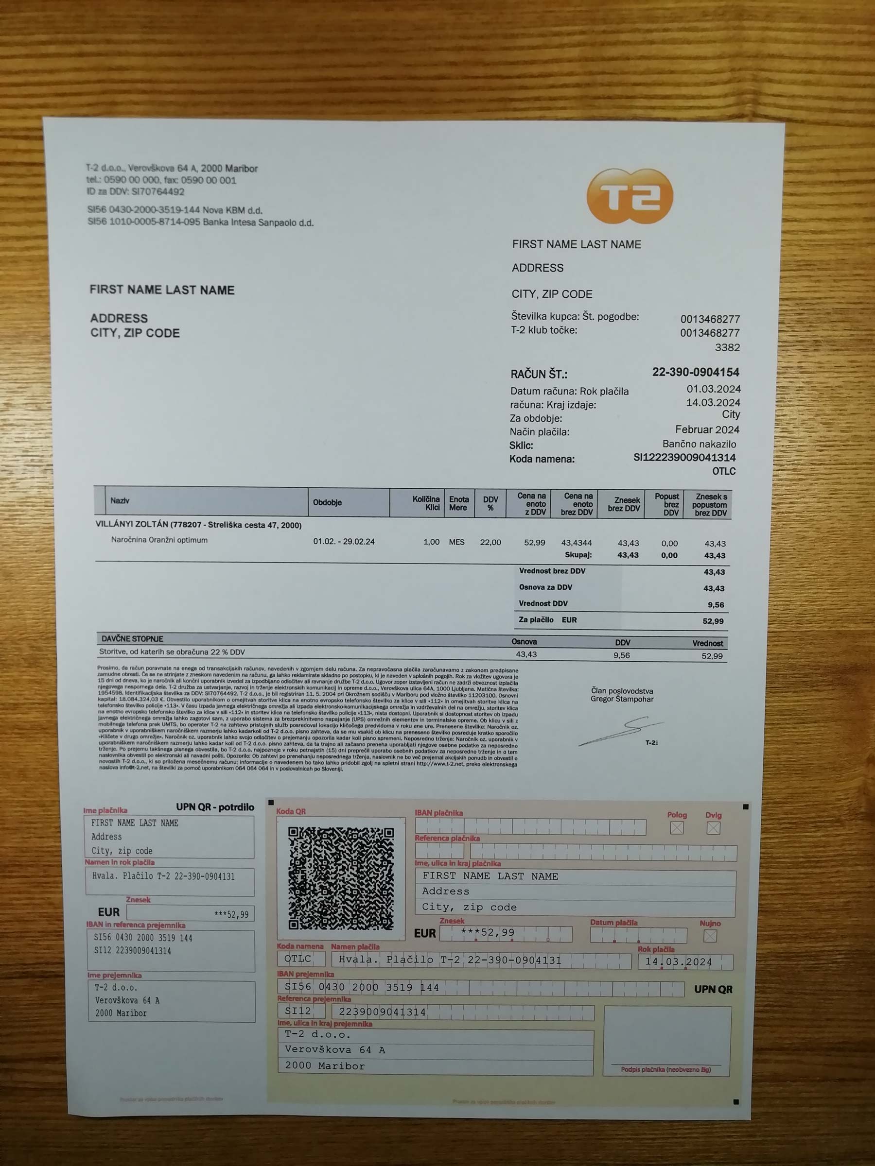 1. Choose the T-2 Slovenia internet bill template.