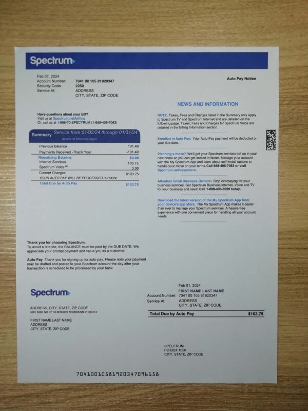 This Spectrum internet statement is designed strictly for lawful uses such as verification training, documentation testing, and UI/UX simulations. It’s suitable for internal reviews, mock compliance workflows, and educational purposes only.