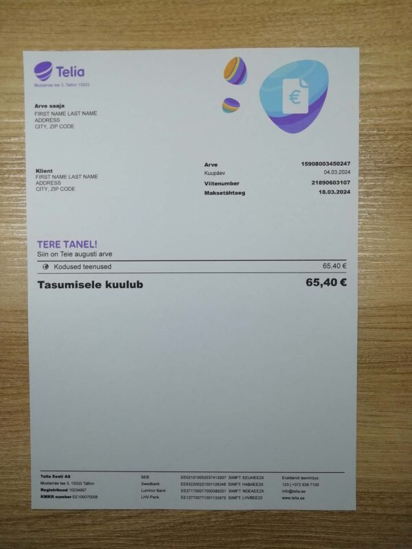Those interested in telecom-style formats can explore the AC Grupp sample for a different take on layout composition. You can also compare it with the Isolta design to better understand Estonian proof-of-address styles.