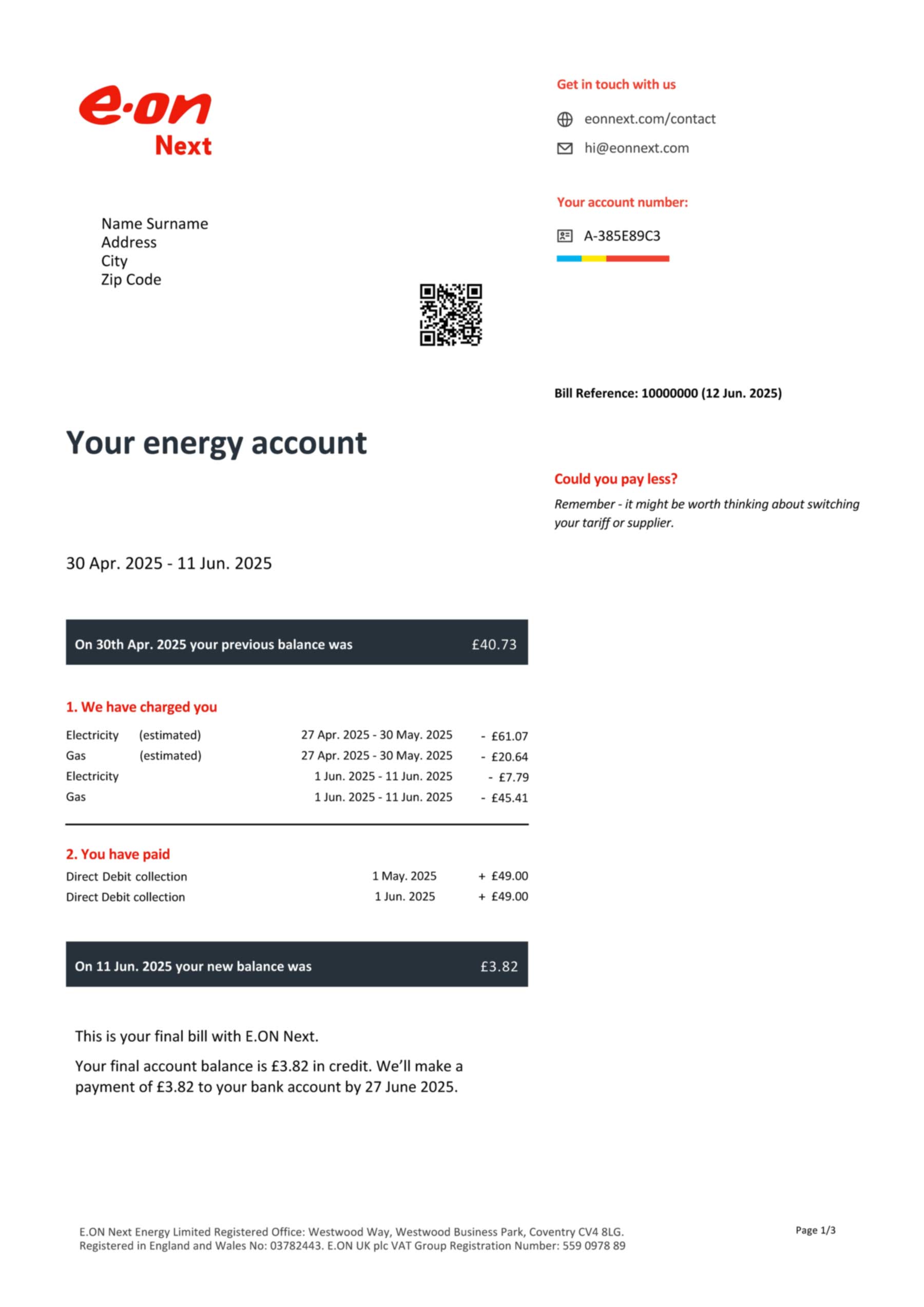 Start building, testing, or teaching with a modern and editable E.ON energy bill format — updated for accuracy, performance, and compliance in 2025.
