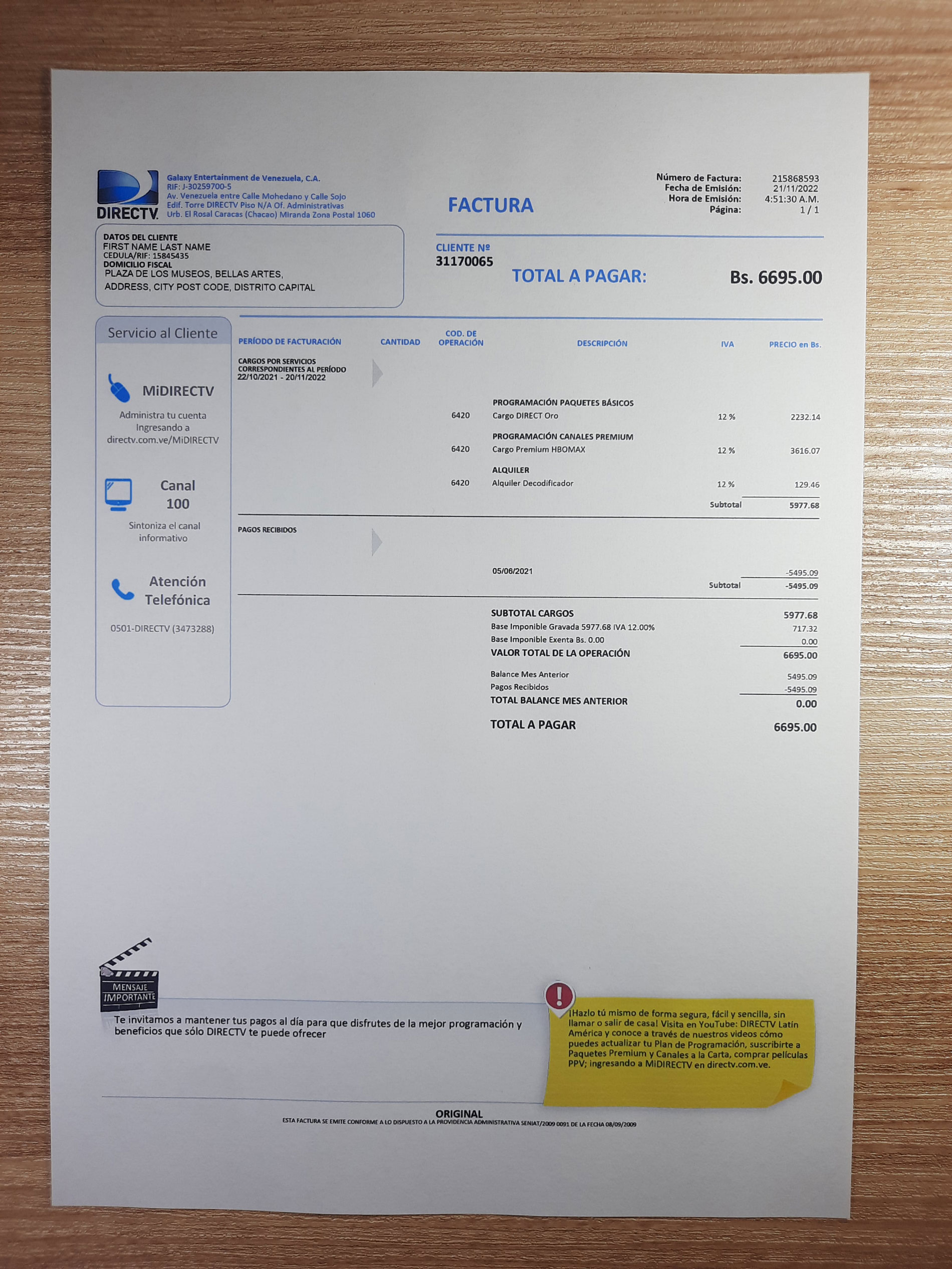 The Venezuela Mobile/Internet Bill — Digitel Account Statement (2025) provides a professionally structured, editable digital file that mirrors the authentic style of telecommunications and broadband invoices used in Venezuela. Designed in 300 DPI high resolution, this Done-For-You document helps designers, developers, and compliance teams simulate realistic billing cycles for POA or KYC review processes. It includes editable customer data, service details, payment summaries, and totals, allowing a clean and credible presentation for digital verification workflows.