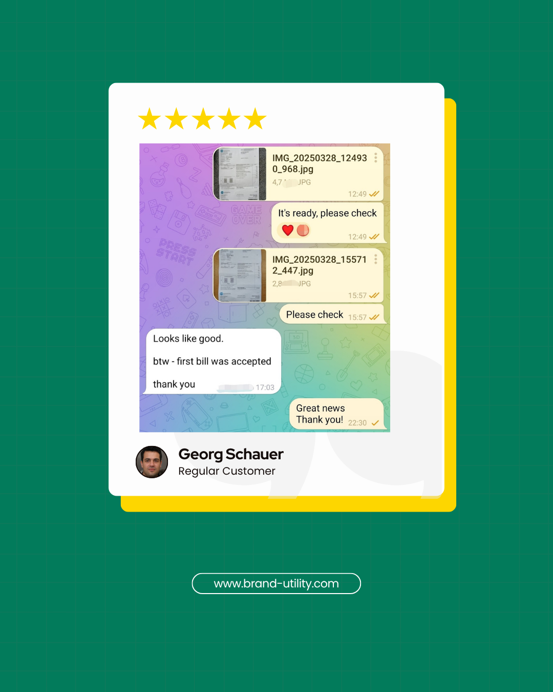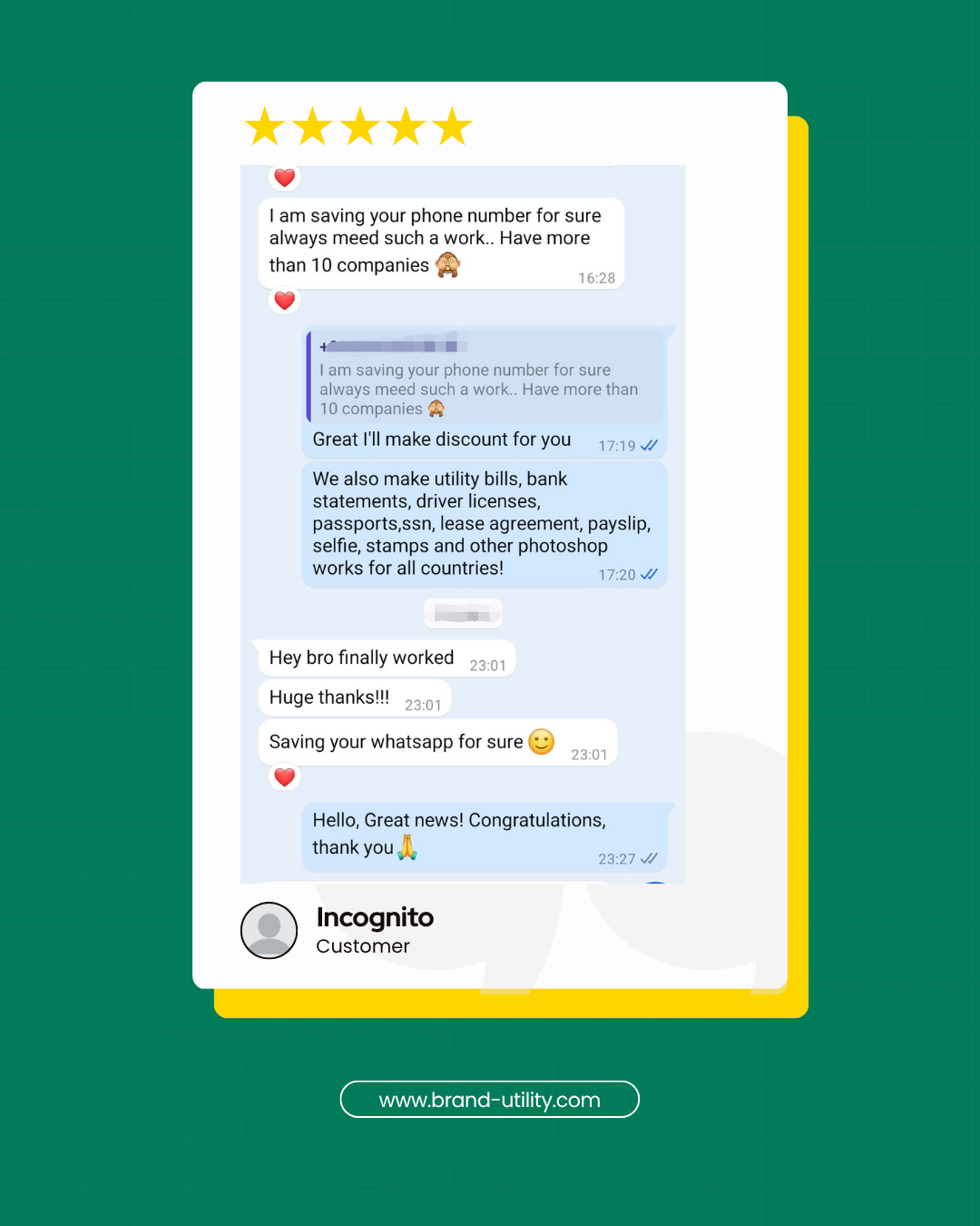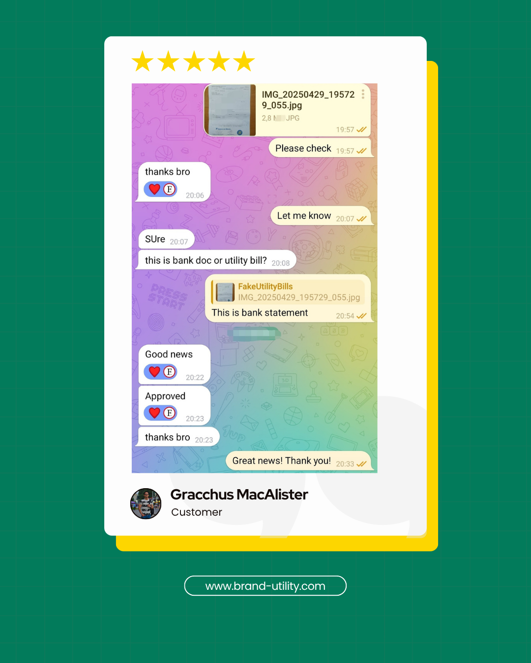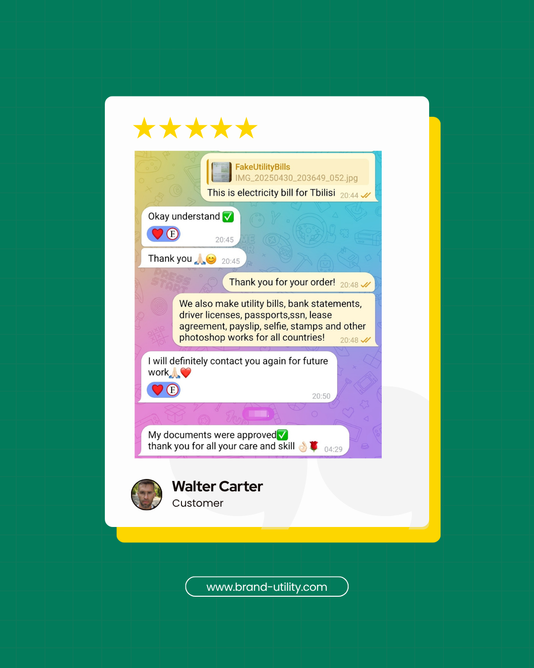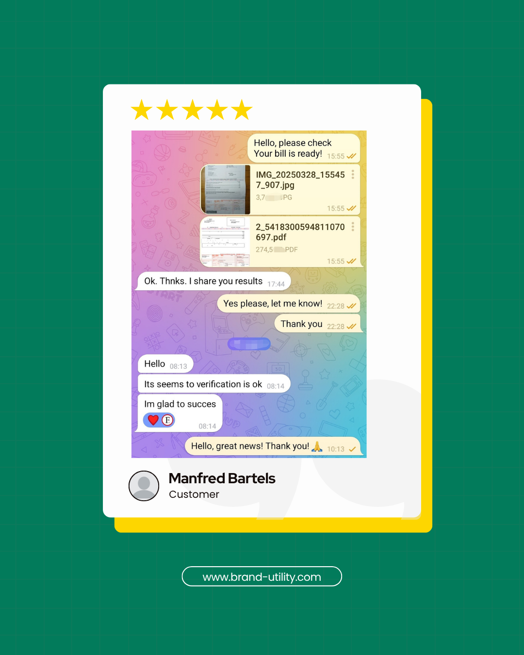 We’ve been helping clients with editable utility bills and custom templates since 2014. Below are screenshots from early customers who trusted us in the beginning – and still come back.